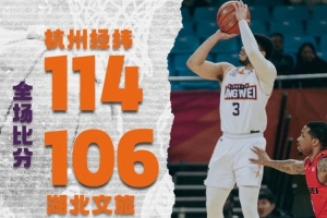 第四节比赛湖北文旅试图追近比分,在斯蒂尔带领下,一度将比分追到只差8分,黄旭的三分帮助球队稳住局面,随后霍华德三分也有,杭州经纬顶住对手第一轮攻势。此后杭州经纬陷入犯规困境,高钰翔和汤普森接连犯规数满被罚下场。比赛进入最后三分钟,霍华德延续火热手感,再次命中三分。但湖北文旅的反扑仍在继续,比赛仅剩最后1分半时,随着湖北文旅二次进攻打成,他们将分差追近至4分。好在关键时刻麦克格里夫的两次罚球稳稳命中,最后1分钟,杭州经纬仍然手握5分领先优势,随着黄旭命中最后一记三分,比赛失去悬念,杭州经纬114:106战胜湖北文旅,收获四连胜!