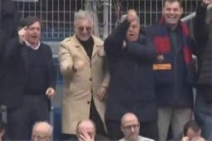 体育资讯3月1日讯 在本轮西甲联赛,巴萨主席候选人拉波尔塔在主场看台上再次做出争议手势。