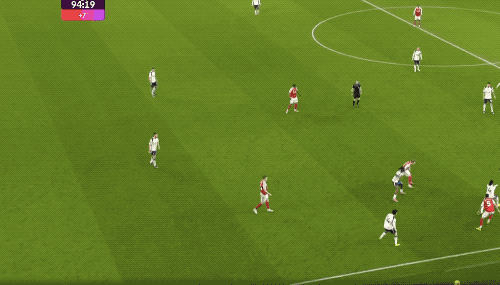 第53分钟,穆阿尼再进一球,但被裁判秒吹,慢镜头可以看到,穆阿尼在射门前推了加布里埃尔一把。